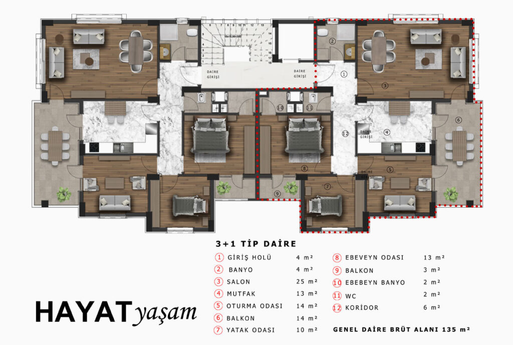 Bölgenin tam merkezinde konumlanan Hayat Yaşam, prestijli tasarım ve güçlü donatısıyla bölgenin imza projeleri arasında yer almaktadır.